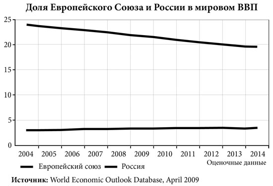 Особенно, когда радикально меняется соотношение сил в мире между потенциальными противниками, (а именно этот процесс мы сегодня наблюдаем), возникают военные кризисы и конфликты. Именно это сегодня мы наблюдаем, но в еще большей степени столкнемся в будущем. Как справедливо отмечают многие авторы, "Современное положение России и Европейского союза характеризуется долгосрочной тенденцией к снижению их удельного веса в мировой экономике и политике и определяется сочетанием целого ряда факторов: