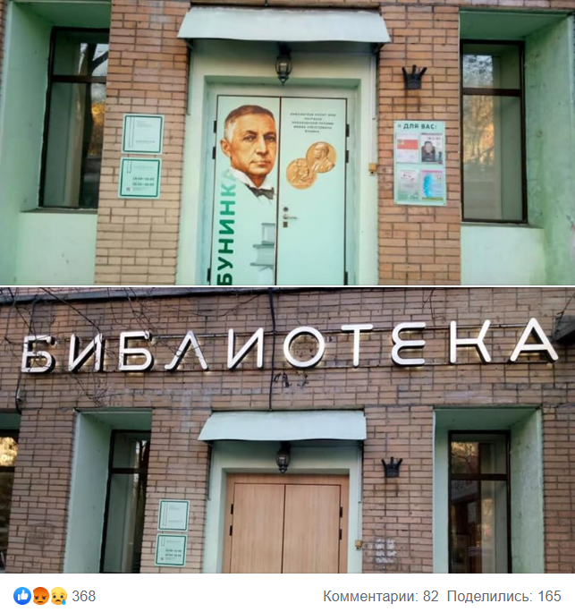 В свое время, Капков распорядился убрать имя Бунина на библиотеке, теперь с двери убрали и портрет писателя.
