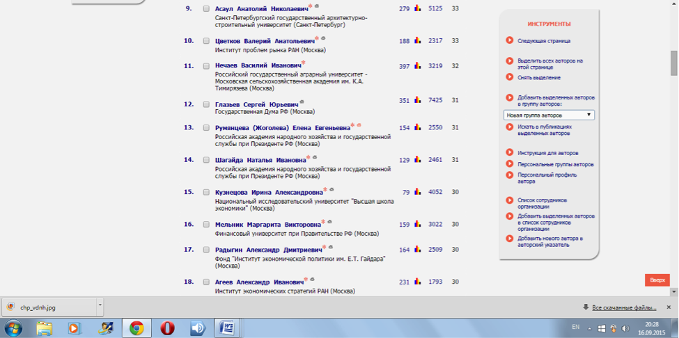 Источник: РИНЦ. Дата обращения 16 сентября 2015 г. http://elibrary.ru/authors.asp