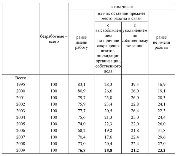 Распределение численности безработныхпо обстоятельствам незанятости[7]