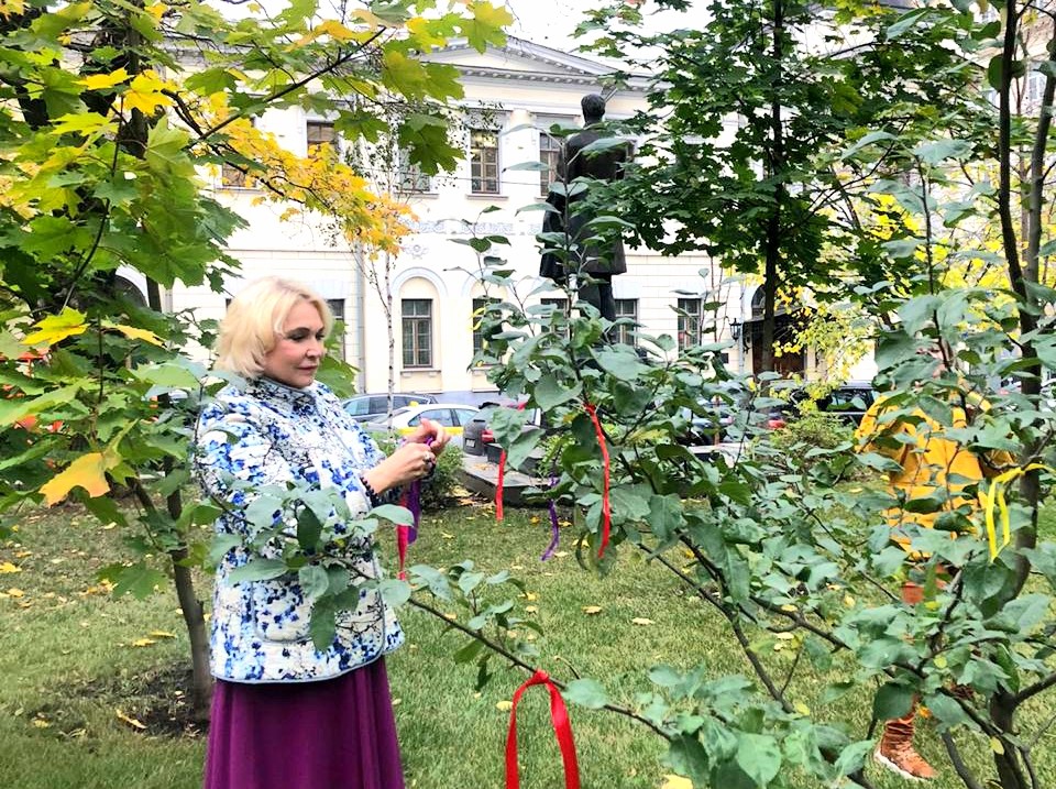 В день рождения писателя к его памятнику в сквере были возложены цветы, а на антоновке, посаженной советниками управы Пресни и почитателями творчества писателя, были привязаны разноцветные ленточки.