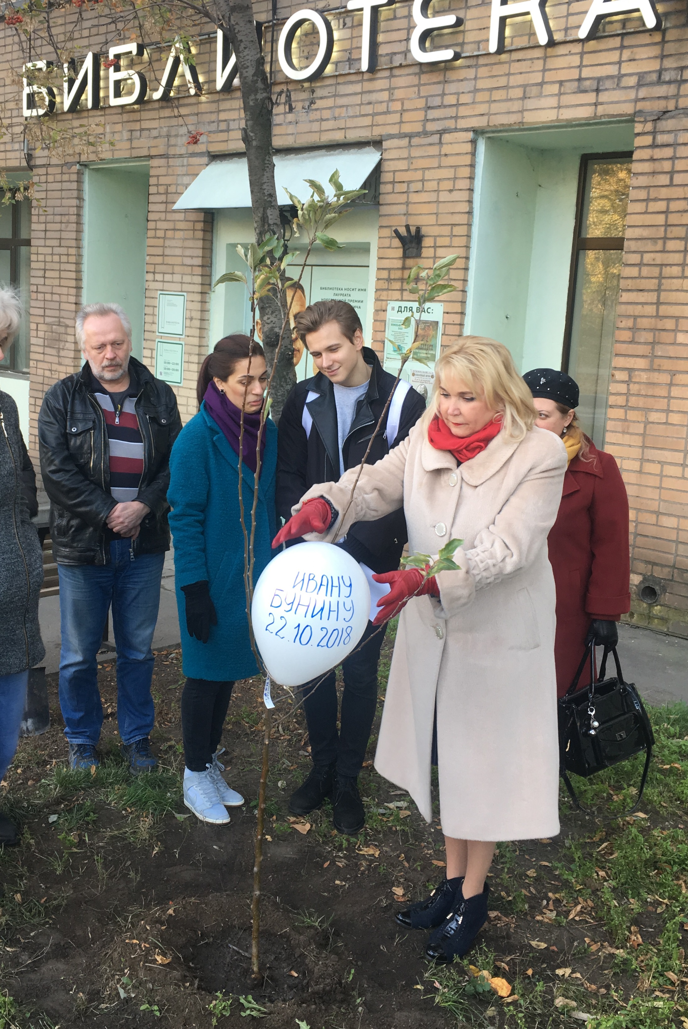 В день рождения Ивана Алексеевича Бунина по инициативе советника по культуре главы управы Пресненского района Натальи Захаровой, сотрудники управы Пресни, библиотеки им.Бунина, а также почитатели творчества писателя посадили антоновку в честь известного рассказа "Антоновские яблоки".