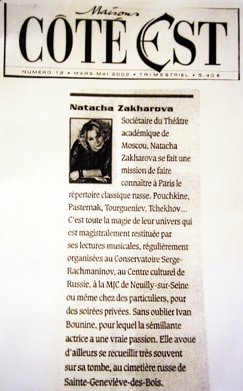 MONO-PERFORMANCE DE NATALIA ZAKHAROVA "FACES OF LOVE" D’APRÈS DES ŒUVRES DE LA LITTÉRATURE CLASSIQUE RUSSE