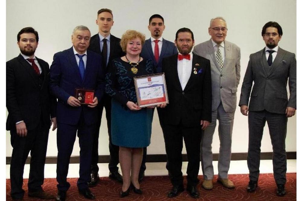 Исмагил Шангареев и Владимир Исхаков (второй слева) на церемонии награждения юбилейной медалью «20 лет Ассамблеи народов России» (Аджман, 2018 г.).