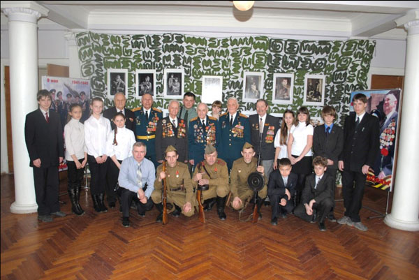На открытие выставки были приглашены как ветераны Великой Отечественной войны, так и ветераны Вооруженных Сил, и еще ученики шестого класса подшефной школы N 68.