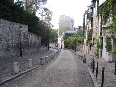С улицы Ламарк сворачиваем на идущую вверх мощеную улочку Рю-де-Соль (Rue des Saules) и поднимаемся до пересечения с улицей Сен-Венсан (Rue Saint Vincent).