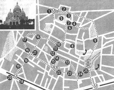 Прогулка начинается у станции метро «Ламарк-Коленкур» («Lamarck-Gaulaincourt»). Здесь снимались все сцены, связанные с метро. Однако в фильме этой станции почему-то присвоено название расположенной неподалеку «Абесс» (Abessess), вероятно, потому что станция «Абесс», как правило, служит начальным пунктом для прогулок по обычному туристическому Монмартру.