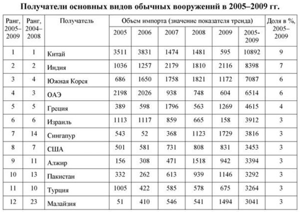 The potential threat of direct use of military force with newest precision weapons is growing in rapidly developing states. This is obvious from arms procurement data. For the past ten years only China has turned from a major importer of armaments and military hardware into a manufacturer and exporter, according to SIPRI surveys. Imports of armaments and military hardware of India, South Korea, Pakistan, Turkey and a number of other countries[19] are rocketing. On the whole, military expenditures of these states doubled in the past decade and new technologies became accessible to all.