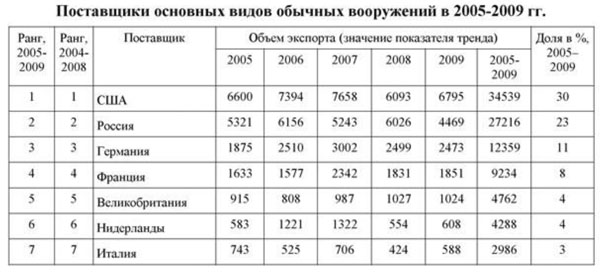 According to this table, arms exporters (excluding Russia) - the United States, France, Germany, the United Kingdom, the Netherlands, Italy and Spain - control over 60% of the world exports of armaments and military hardware and actually impose their rules of the game and security conditions[20]. Obviously, the United States and its allies - Germany, France and the United Kingdom - dominate the market of precision weapons. Russia, a leading exporter, has a small share on the precision weaponry market.