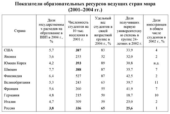 Государству идеологически и экономически выгодно увеличивать количество студентов и качество образования. Это - прямые инвестиции в общество и экономику, причем - самые эффективные. Образование, кроме того, одно из конкурентных преимуществ нашей страны, которое, к сожалению, постепенно девальвируется. Как видно из приведенных исследователями МГИМО(У) данных, Россия занимает отнюдь не лучшее место в этой области[27].