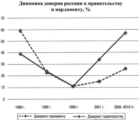 Доверие к власти росло даже в кризисный период, но резко пошло на убыль после кризиса[18].
