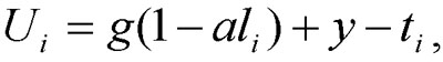 where g and a are two positive parameters, and li represents the difference between the preferences of an individual i and the government of his country (i.e., the provided public good). Thus, the utility function is linear. The parameter g represents the maximum utility of the public good when li = 0, and the parameter a - decline in utility that an individual faces when the government falls short of individual`s preferences (decline in the marginal utility of the government services when the government is at a distance of li from individual`s preferences).