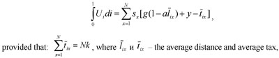 In their later models A. Alessina and I. Spolaore assume that individuals, who demonstrate similar preferences, reside geographically homogeneously and are immobile. Thus, li in the above function reflects both differences in individual preferences and the geographical distance between them. The countries` boundaries are determined in the model endogenously. However, the geographical position of each individual is fixed.