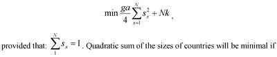 countries of the same size are selected s=1/N. Consequently, the solution of the task set above for N is:
