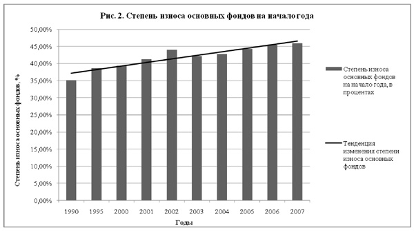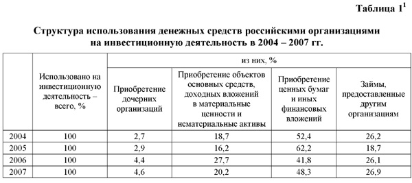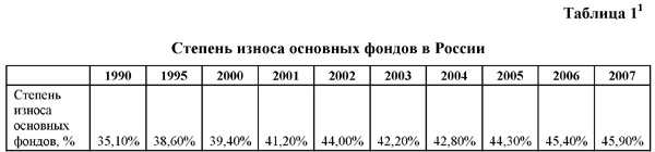 В России при наличии беспрецедентного роста фондового рынка степень износа основных фондов растет, а привлекаемые на финансовом рынке ресурсы направляются на осуществление спекулятивных операций и сделок по слиянию и поглощению, в том числе на зарубежных рынках (табл. 1 – 2 и рис. 2 – 3). Таблица 1[4]