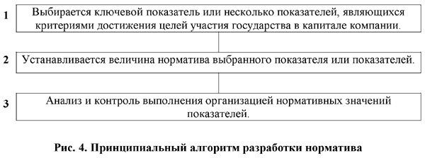 3. На основании сопоставления значений выбранного показателя или показателей, достигнутых или обеспечиваемых компанией, с их нормативной величиной происходит принятие управленческого решения о продолжении выбранной стратегии и тактики взаимодействия с частными собственниками, их корректировке либо корректировке целей участия государства в данной организации и величины нормативов, либо отказе от участия государства в нем и т.п.