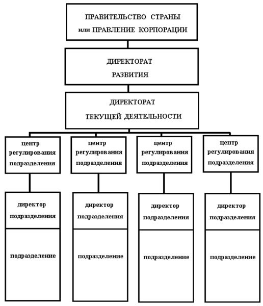 2) центры регулирования подразделений, подчиненные центру регулирования государства (или, при реализации в меньших масштабах,- корпорации),