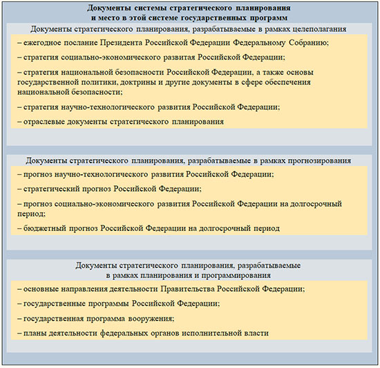 Надо признать, что за последние два десятилетия в России с переменным успехом шел процесс медленного осознания необходимости работы над национальной стратегией и долгосрочным стратегическим планированием,[3] в частности, была подготовлена серия нормативных документов по стратегическому планированию, которые принимались как в первом десятилетии нового века[4], так и получили своё ускоренное развитие после принятия Федерального закона № 172-ФЗ «О стратегическом планировании в Российской Федерации» от 28 июня 2014 года[5].