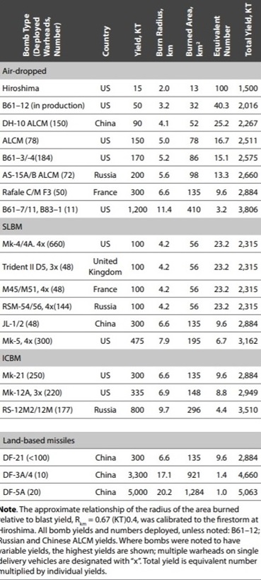 Таблица 1. Основные типы ядерных боеприпасов[12]