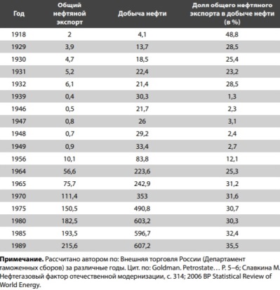 Таблица 1. Добыча нефти и нефтяной экспорт в СССР в 1965−1989 годах[2]