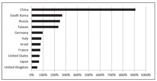 Рис. 4.Рост затрат на НИОКР некоторых стран, 2000-2013 гг.[5]