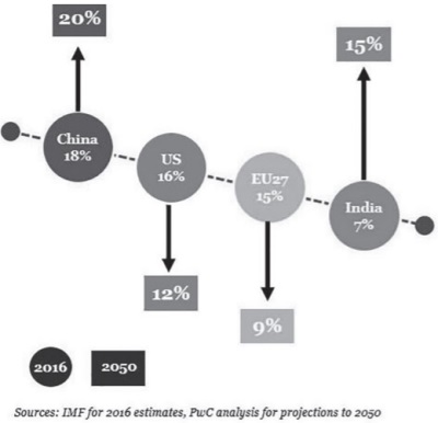 Рис. 6. США и Европа уступят к 2040 году свои экономические позиции Китаю, Индии и другим странам[7]