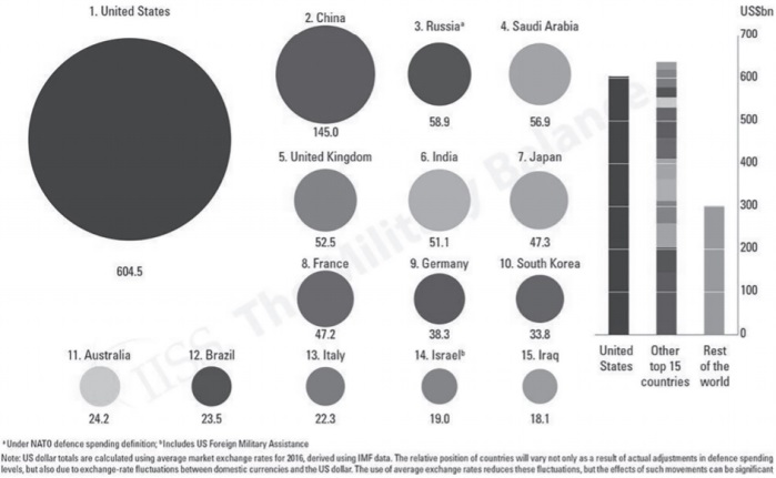 Рис. 7. Сравнение военных бюджетов ведущих 15 государств (в 2016 году)[8]
