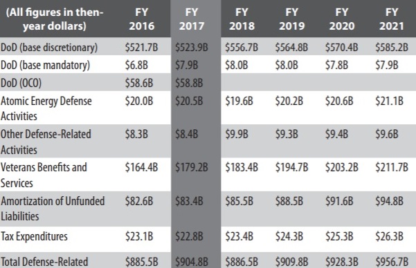 Таблица 1. Общая сумма расходов на оборону на 2017 ф.г.[9]
