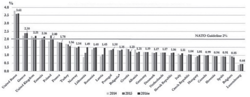 С учетом того, что до 2015 года военные расходы стран-членов НАТО сокращались и только в 2016 году заметен определенный рост, можно предположить, что «отложенные» расходы могут быть компенсированы, что неизбежно приведет к быстрому абсолютному росту военных расходов в Европе.