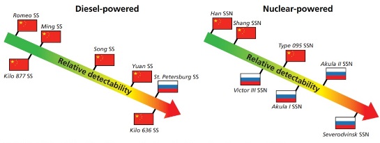 Рис. 15. Относительная способность обнаруживать ПЛАРБ России и КНР[15]