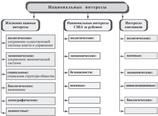 Национальные интересы — самый широкий круг интересов США, включающий как глобальные и региональные, так и локальные интересы