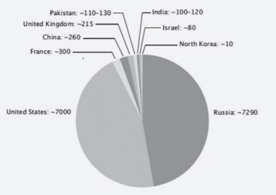 Рис. 1. Распределение ядерной мощи по странам в 2016 году[3]