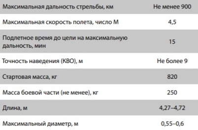 Таблица 2. Основные тактико-технические требования, предъявляемые к сверхзвуковой УР