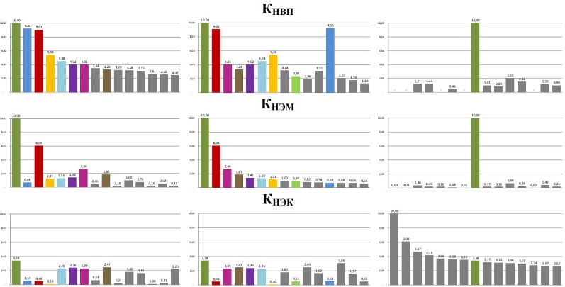 Рис. 3. Рейтинги стран в соответствии со значениями Кнвп, Кнэм, Кнэк[6]