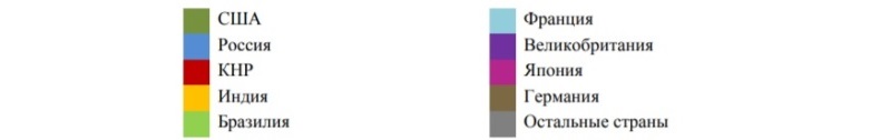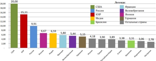 Рис. 2. Рейтинги стран в соответствии со значениями коэффициентов нормированной экономической мощи (Кнэм)[5]