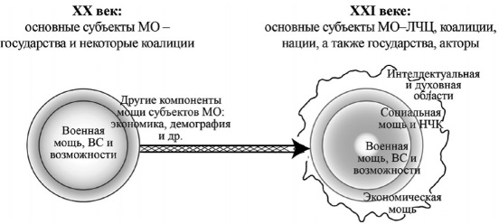 Рис. 4. Основные области военно-силового противоборства в XX и XXI веке между субъектами МО и ВПО