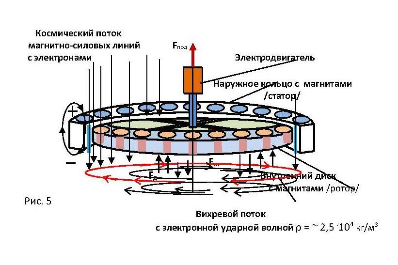 Использование этих двух открытий заложено в создании двигателя подъема – магнитно-силового модуля, способного создавать силу тяги, как для аэромобиля, так и для космического аппарата.