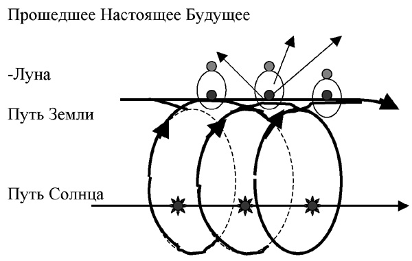 Спирально-вихревой характер движения свойственен веществу нашей Вселенной. Следовательно Земля не может завершить свою орбиту, так как движение Солнца оттягивает постоянно планету вперед. Поэтому в каждой точке орбиты Земли присутствует прошедшее, настоящее и будущее время. Этот пространственновременной фактор является внутренним свойством любой живой системы. Время – волновая форма движения материи. И как время находится в движении, так и пространство находится в движении. Все это приводит к заполнению пространства вибрационными слоями. Со входом Солнечной системы в созвездие Водолея, появилось Новое Время. Изменился момент сжатия, свертывания времени и смена направления Вектора Времени в точке его приложения с переходом к развертыванию, расширению. В Новом Времени начался процесс утоньшения вибраций, пробуждение способностей человека к восприятию Духовного Мира [23].