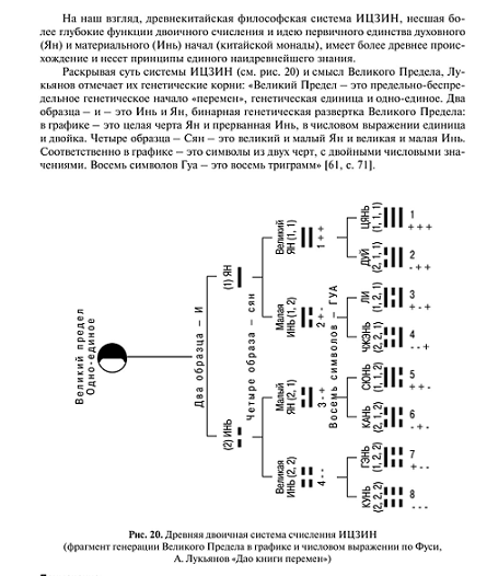 ИЦЗИН – древнекитайская двоичная система счисления, или Книга Перемен, основана на диалектических принципах философии перемен, структурно-логической системы изменений двух взаимодействующих начал (понятий): Ян и Инь. Книга Перемен, несмотря на то, что ей более 3500 лет, по другим источникам - более 9000 лет, в отличие от Ригведы, хорошо сохранилась в истории.