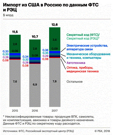Сейчас поставки в Россию американских товаров и технологий, чувствительных с точки зрения национальной безопасности (это большой список, включающий, например, аэропроизводные газовые турбины, электронные приборы и компоненты, интегральные микросхемы, измерительное и калибровочное оборудование, различные материалы и т.д.), возможны только при наличии экспортной лицензии Минторга США. Эти лицензии и так выдаются с трудом. Теперь, как рассказал представитель Госдепа на брифинге, в таких лицензиях будет автоматически отказано, если конечным получателем чувствительной продукции является организация, связанная с российским государством. По словам представителя Госдепа, потенциально такие потребители в России могут лишиться будущих поставок на «сотни миллионов долларов». В 2016 году (последняя доступная статистика) Минторг США рассмотрел 502 заявки на экспорт/реэкспорт товаров в Россию на общую сумму $4,3 млрд., из которых одобрено было 208 заявок на сумму $2,7 млрд.[5] Примечательно, что не смотря на санкции, объём и структура американского экспорта в Россию практически не изменились.