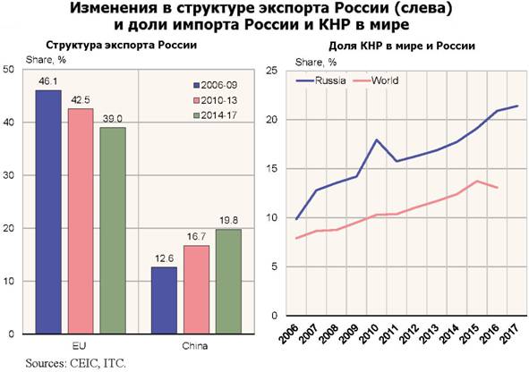 На эффективность этих санкций в возрастающей степени начинает влиять переориентация экспорта и импорта России на другие рынки, которая ликвидирует прежние монопольные позиции ЕС в торговле с Россией. Всего за несколько лет произошли достаточно радикальные перемены в структуре внешней торговли РФ со странами ЕС и КНР, но в ещё большей степени они смогут произойти в ближайшие 5–7 лет по мере развития отношений России со странами Юго-Восточно Азии.