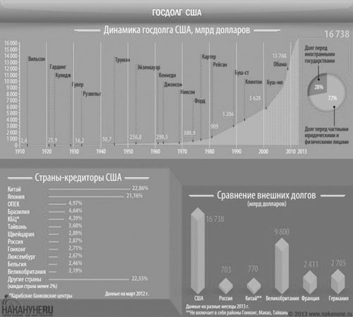 В то же время финансовая нестабильность в США, особенно ярко проявившаяся в октябре 2013 года, показала зависимость как всей мировой экономики, так и особенно стран-кредиторов от финансовой политики США.