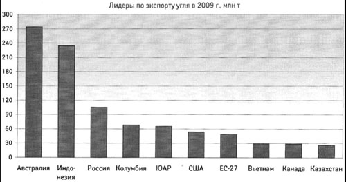Конкурентами России по экспорту угля в мире и АТР выступают Австралия (более, чем в 3 раза, чем Россия) и Индонезия (почти в 2,5 раза).
