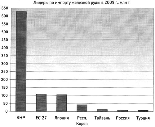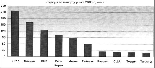 Наибольшее увеличение импорта в 2009 г. отмечено у КНР (+25 млн т) и Индии (+23 млн т). Кроме того, выраженная положительная динамика была характерна для ЮАР, Индонезии и Таиланда. Лидерами по сокращению импорта стали ЕС (-55 млн т), США (-40 млн т) и Япония (-25 млн т). Меньший, но тоже значительный спад зафиксирован у Турции, Сингапура, Филиппин, Республики Кореи[20].