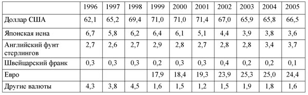 Доли резервных валют в международных резервах, (%)[84]