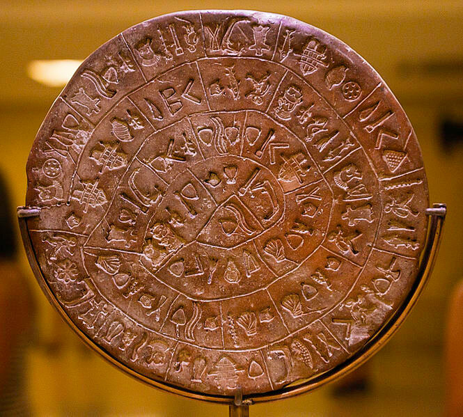 В.Г.АРЦЫКОВ: А нет ли сомнения, Александр, в подлинности Фестского диска? Уж, очень, как-то странно, что его нашли в начале прошлого века на Кипре. Рядом с неким «линейным письмом А». Почему-то подделкой объявили подобный диск, найденный в конце прошлого века, который куда-то пропал. Ныне нашли подобный диск под Рязанью. Есть информация, что находили подобные диски близ озера Байкал…