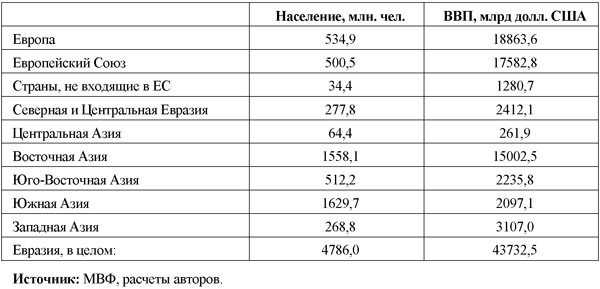 Население и ВВП макрорегионов Евразии, 2011 г.[10]