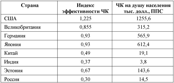Как уже говорилось, решающую роль на новом этапе развития человечества будет играть соотношение сил между новыми центрами силы - США, Евросоюзом, Китаем, - которое будет определяться уже не соотношением их ВВП или военной мощи, а соотношением национальных человеческих капиталов (НЧК). И здесь не может не беспокоить, что по этому критерию Россия качественно, многократно, уступает формирующимся новым центрам силы. Причем уже не только в США и европейских странах, но и Японии, Китае, Индии и, конечно, на Тайване, в Гонконге и других странах АСЕАН.