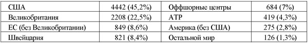 Таким образом, только на США и Великобританию (не считая оффшорные центры) приходится 67,7% подобных фондов".