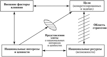 Этот пример иллюстрирует влияние внешних факторов на формирование стратегии даже великой державы, хотя в нормальных условиях стратегия находится прежде всего под влиянием двух групп факторов - сформулированных национальной элитой долгосрочных (стратегических целей) и имеющихся ресурсов (возможностей): политических, экономических, военных, гуманитарных и иных. Применительно к евразийской стратегии России это означает, что прежде всего необходимо, чтобы правящая элита четко сформулировала цели и вытекающие из них частные задачи, которые основывались бы на адекватной оценке ресурсов - как национальных, так и потенциальных союзников и партнеров.